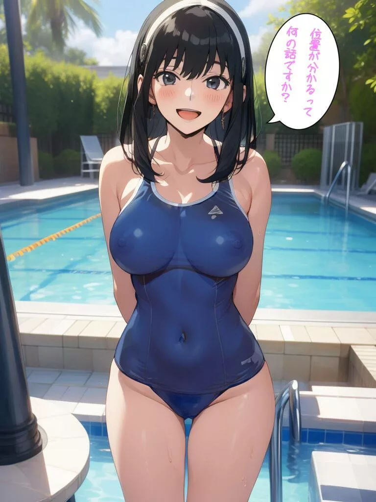 乳首が透けて見えるスク水ヨルさん